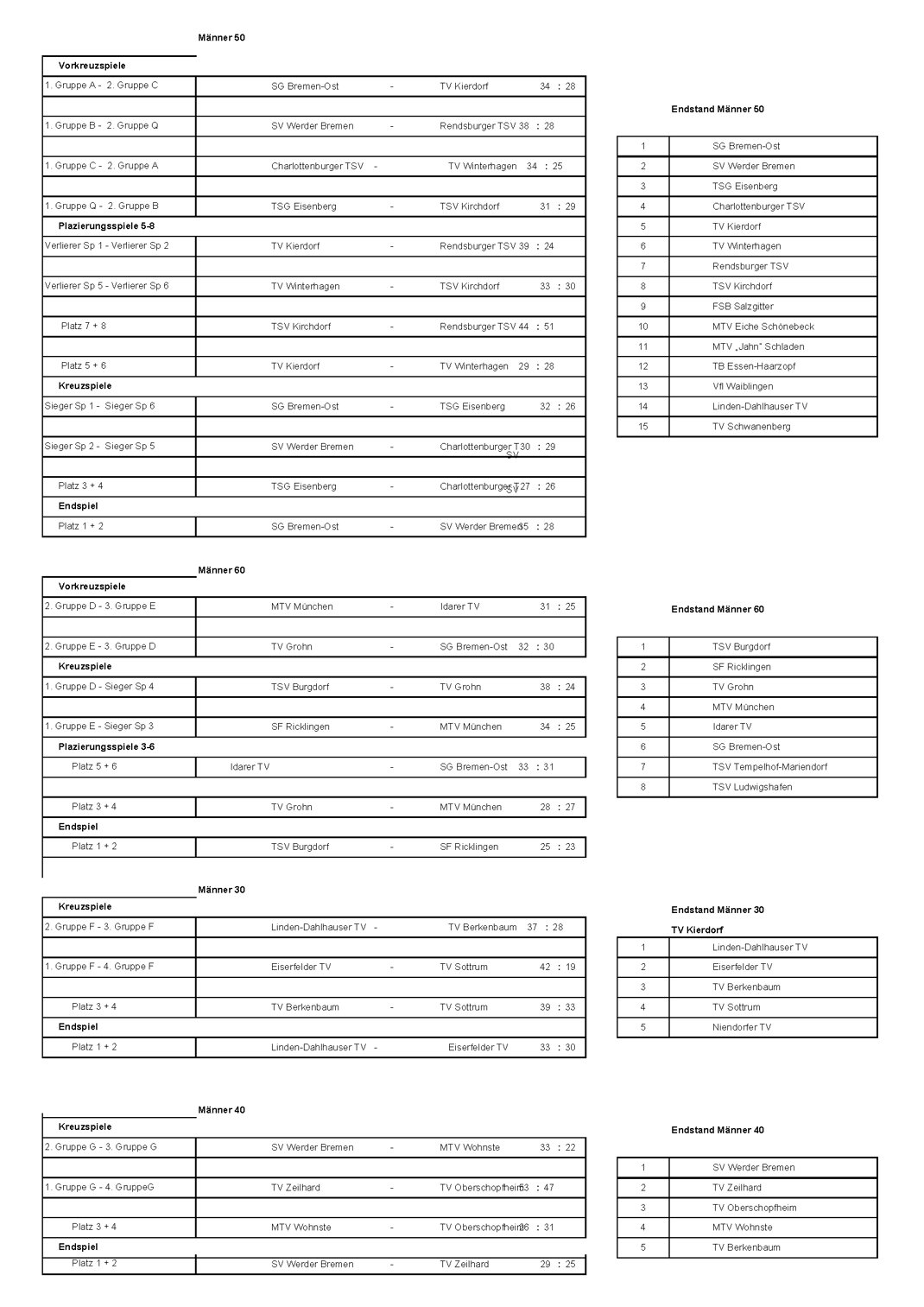 Auch die jüngeren Teams der Altersklasse M40 unterlagen dem MTV. Gegen MTV Wohnste M40 mit 40:34 und dem MTV Schladen mit M40 36:27, konnten sie an diesem Tag von keinem Gegner bezwungen werden und wurden verdient Landesmeister.